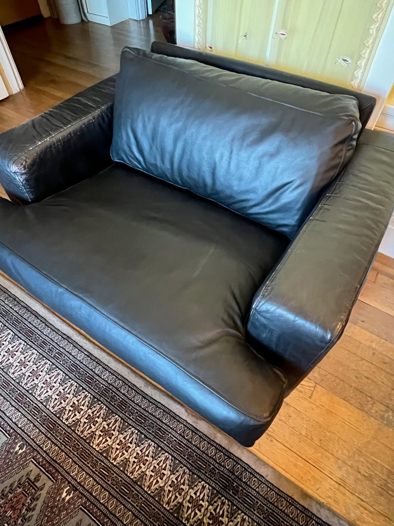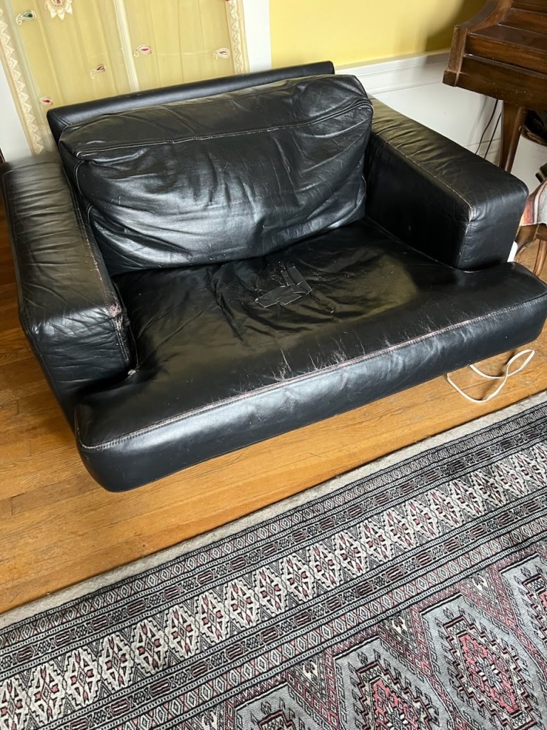 Black Leather Chair – Replace Cushions: Before After Pictures