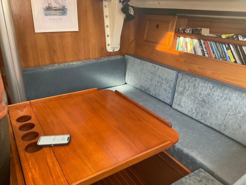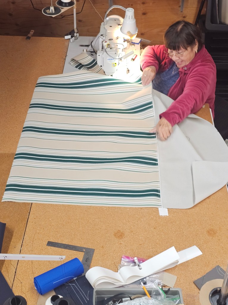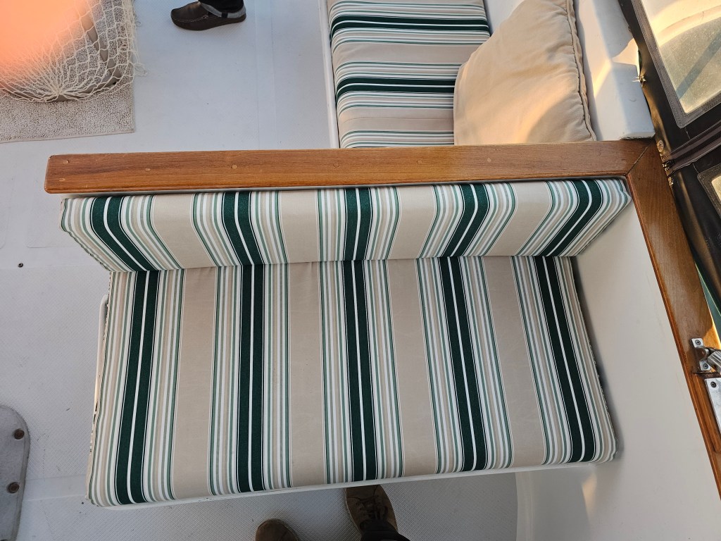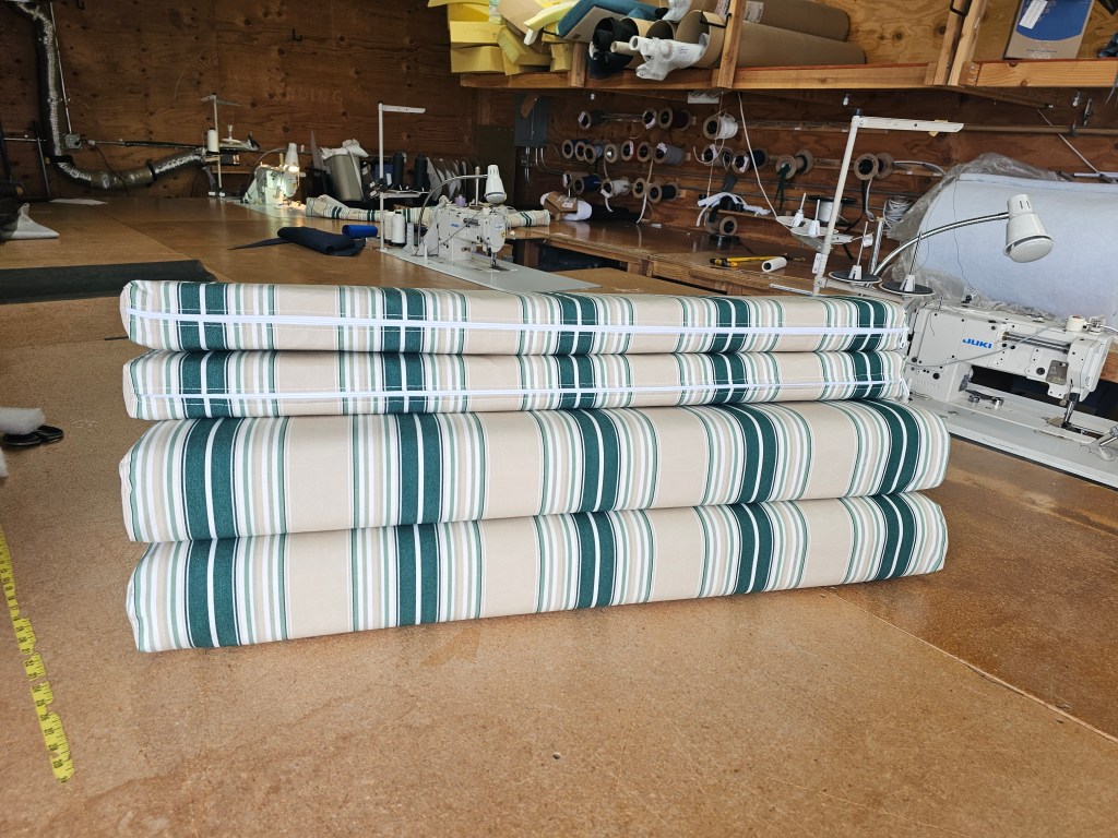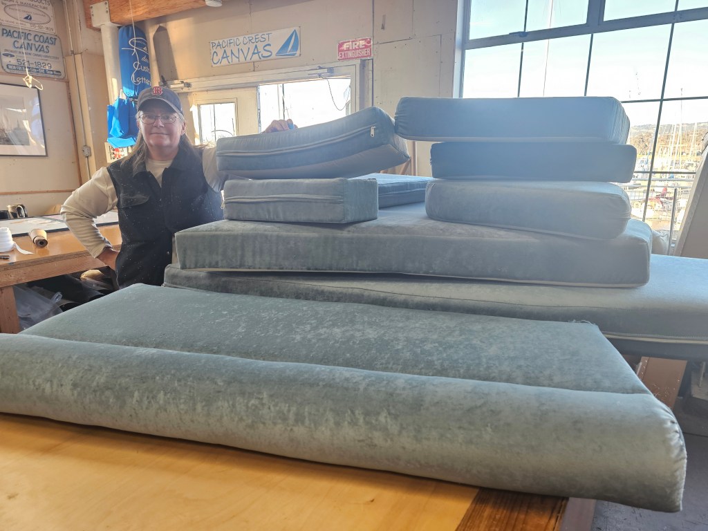 Replace All Boat Cushions: Before, In-Shop, Installed on Sailboat