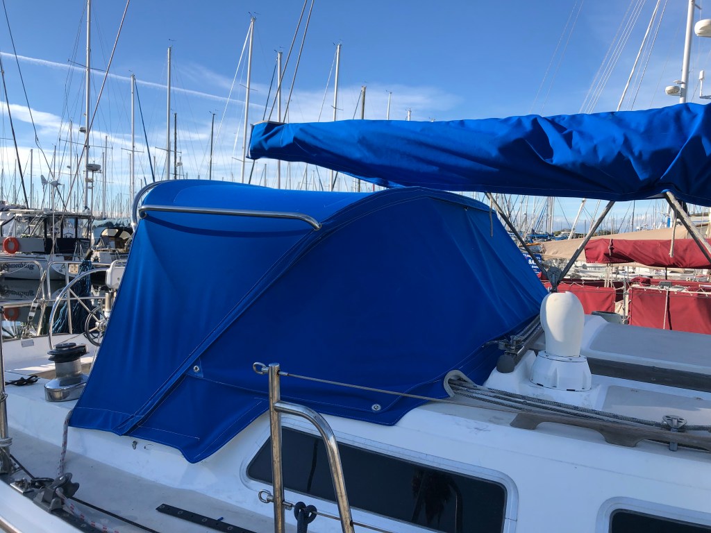 Marine canvas projects are usually rather labor intensive. We typically start with a meeting at your boat for a frank discussion of your project, the features you want, and your expectations. Next we focus on the materials that are available, and the trade-offs of each. Once decisions are made, we can begin to develop a design of what is possible, and how long it will take. Only then can we finally put together a quote. We ask for a 50% deposit up front to cover the ordering of materials.