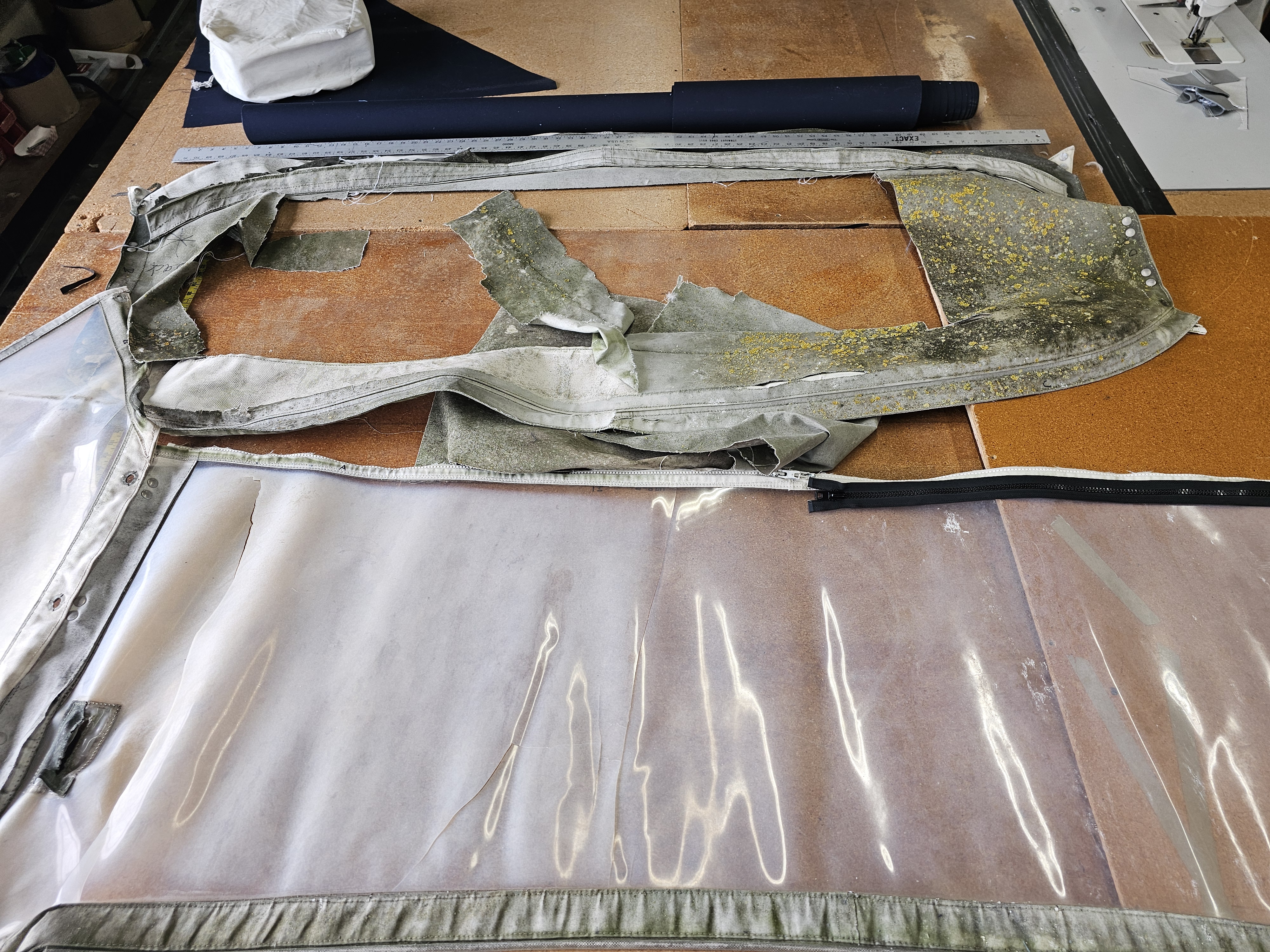 There are trade-offs in repairing your old marine canvas. Many older dodgers tend to have UV damage to the glass, causing it to become cloudy, or the canvas itself can wear thin, shrink, or the old snaps fail. So a new dodger is often the only option. But if the canvas is strong enough, we can just replace the glass, to reduce costs.
